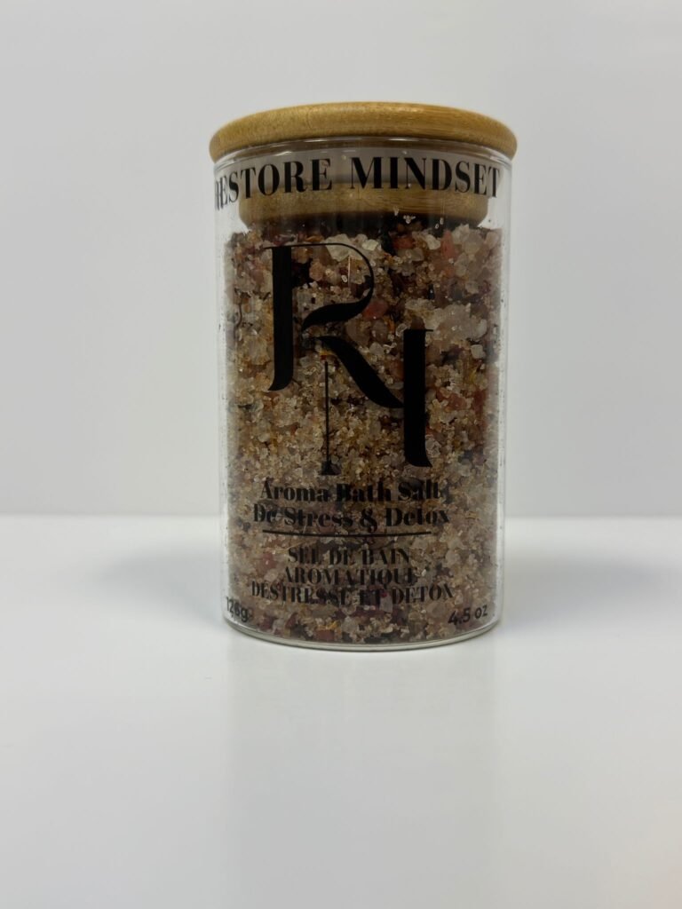 Experience the Aroma Bath Salt for a deeply restorative soak that detoxifies, soothes, and nourishes your body while calming your mind.