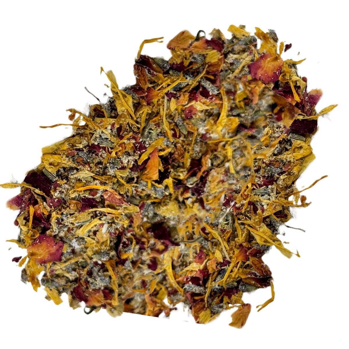 This rich blend of mineral salts, nourishing botanicals, and aromatic essential oils is encapsulated in a muslin bag. As you add the tea bath to your water, it releases its rich botanicals and nurturing oils, transforming your bath into a spa-like retreat and allowing the therapeutic benefits to envelop your senses and skin.